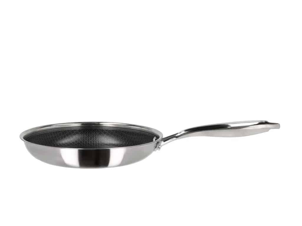 Hybrid 3ply-serien er fremstillet af rustfrit stål med keramisk hybrid-belægning, der sikrer gode stegeegenskaber og let rengøring. Bemærk, at 3-ply-konstruktionen med sin struktur af to lag rustfrit stål og et lag aluminium i midten, opvarmes meget hurti
