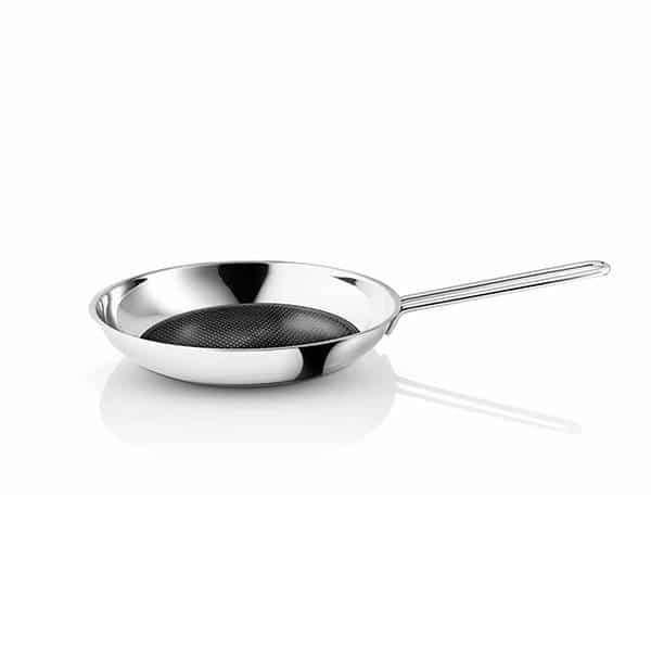 Kvalitetsstegepande med mosaic fra Eva Solo Denne alsidige kvalitetsstegepande er fremstillet af 90 % genanvendt post-consumer rustfrit stål, et yderst holdbart og rengøringsvenligt materiale. Panden er belagt med en keramisk Slip-Let® belægning i et inn