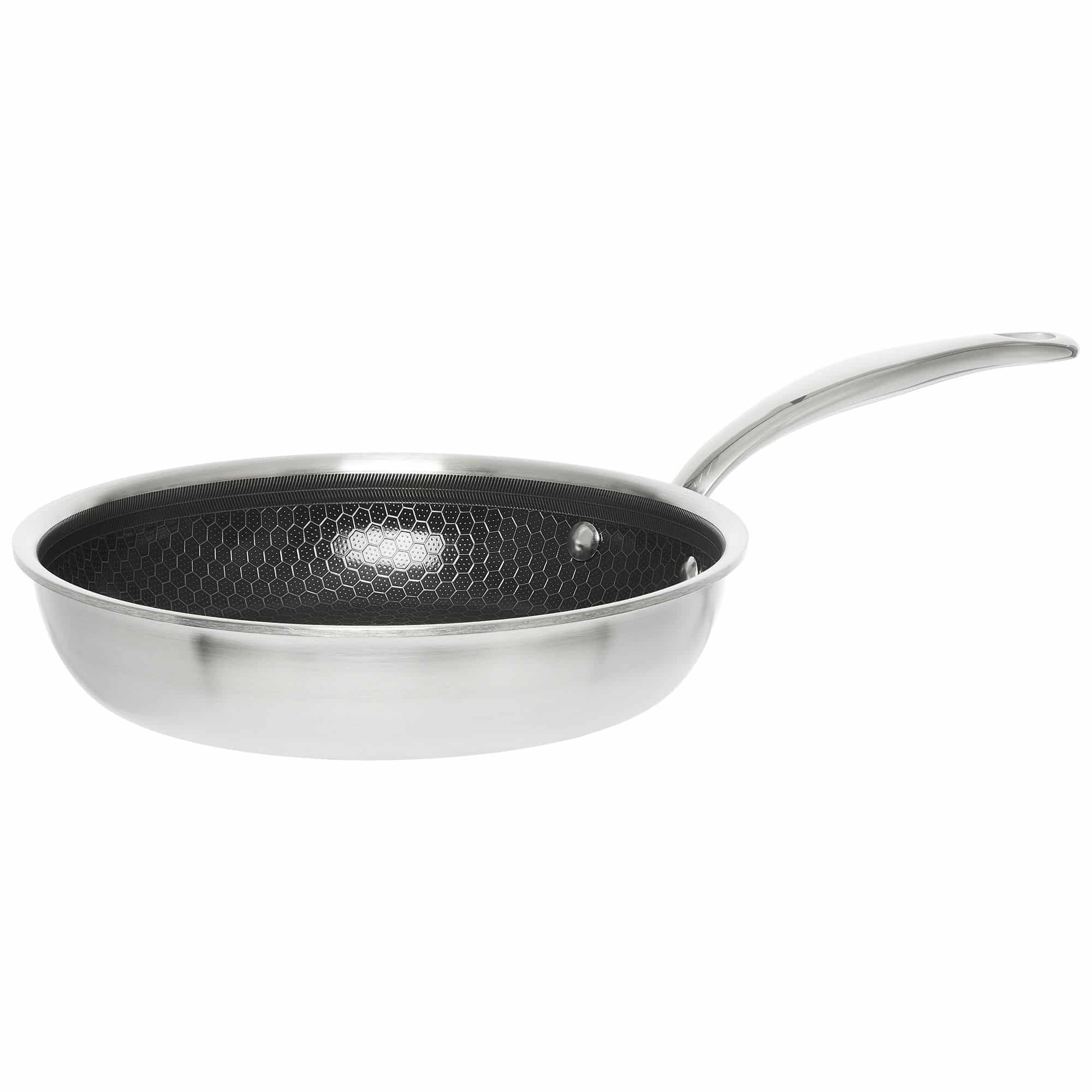 Mareld Non-stick Honeycomb Stegepande – Hybridpande til perfekte stegeresultater.Mareld Non-stick Honeycomb Stegepande er en innovativ hybridpande, der kombinerer rustfrit stål med en keramisk belægning i et honeycomb-mønster. Belægningen dækker ikke he